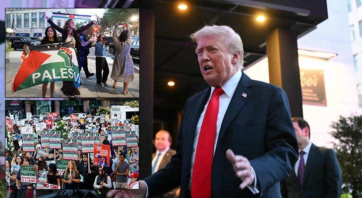“Trump, günümüzün Hitler’i” şeklinde de slogan atılan kadınları kısa bir süre izleyen Trump, daha sonra eliyle göstericilerin dışarı çıkarılması talimatı verdi. Protestoyu gerçekleştiren göstericiler restorandan çıkarılırken Filistin ve Gazze lehine sloganlar atmaya devam ettiler.,