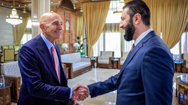 ABD Başkanı Donald Trump ve Dışişleri Bakanı Marco Rubio adına, Şam’da Suriye Cumhurbaşkanı Şara, Dışişleri Bakanı Şeybani ve ekibiyle bir araya gelerek Halep’teki son gelişmeleri ve Suriye’nin tarihi geçiş sürecinde izlenecek genel yolu görüştüğünü aktaran Barrack, “Başkan Trump, bu anı yeni bir Suriye için çok önemli bir fırsat olarak görüyor. Arap, Kürt, Dürzi, Hıristiyan, Alevi, Türkmen, Asuriler ve diğerleri dahil tüm toplulukların saygı ve haysiyetle muamele gördüğü, yönetim ve güvenlik kurumlarına anlamlı bir şekilde katıldıkları birleşik bir ülke. Bu fırsatın farkında olarak, Suriye’ye ilerleme şansı vermek için yaptırımları kaldırmayı kabul etti.” değerlendirmesinde bulundu.